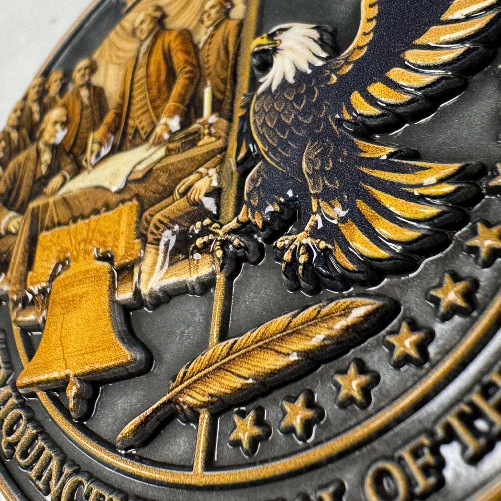 Crafted with high quality materials and detailed engraving, this challenge coin is built to last for generations. It makes a perfect gift, a display piece, or a keepsake to pass down as a reminder of what this country stands for.