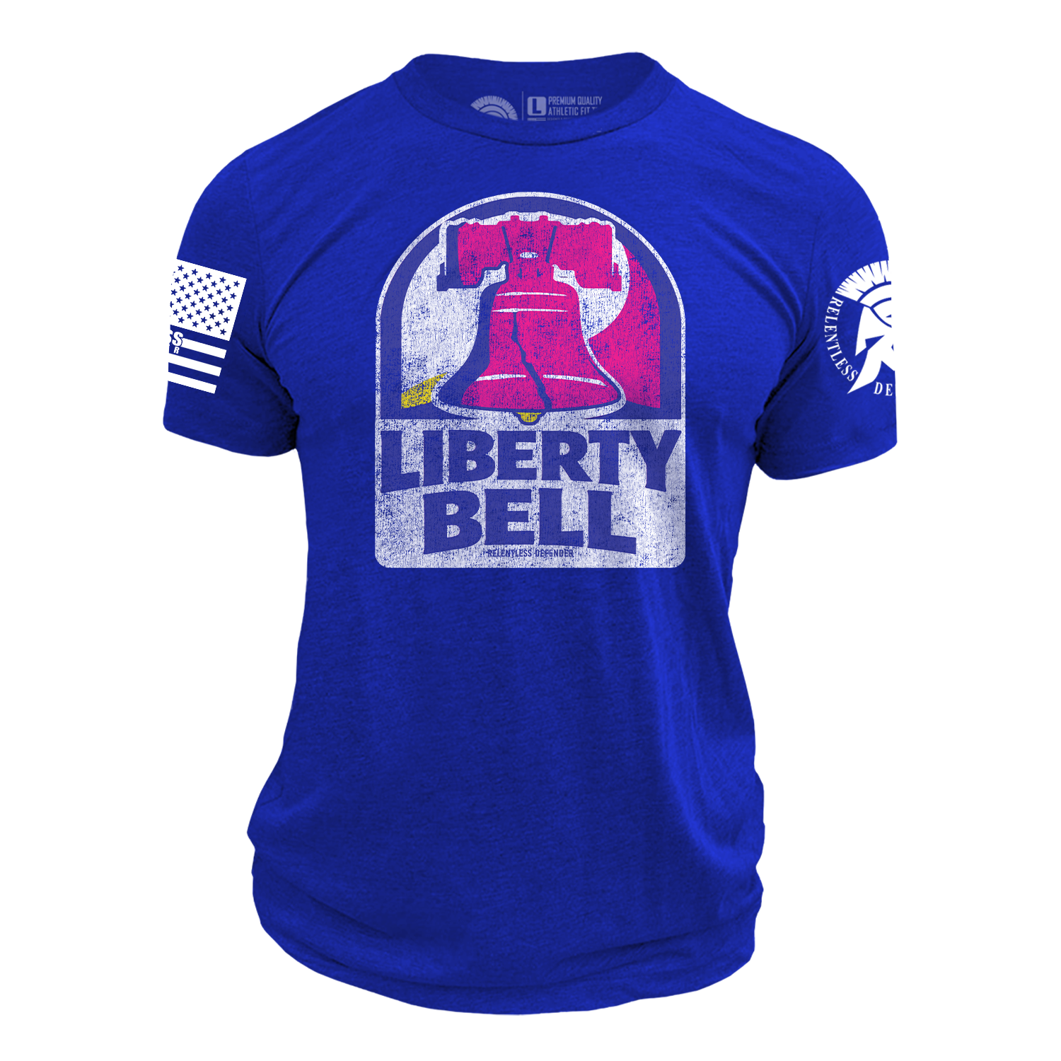 Printed on a royal blue shirt that mirrors the signature color palette of the inspired chain, this tee stays visually authentic while standing out in any lineup. The bold contrast and clean layout ensure the graphic pops without overwhelming the overall look. Finished with Relentless Defender’s signature branded sleeves reinforcing brand loyalty and attention to detail.
