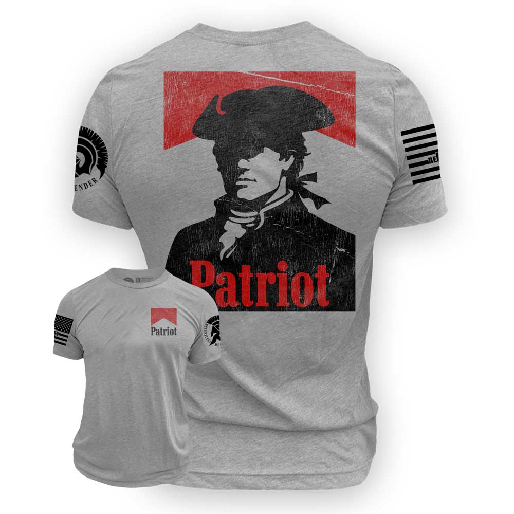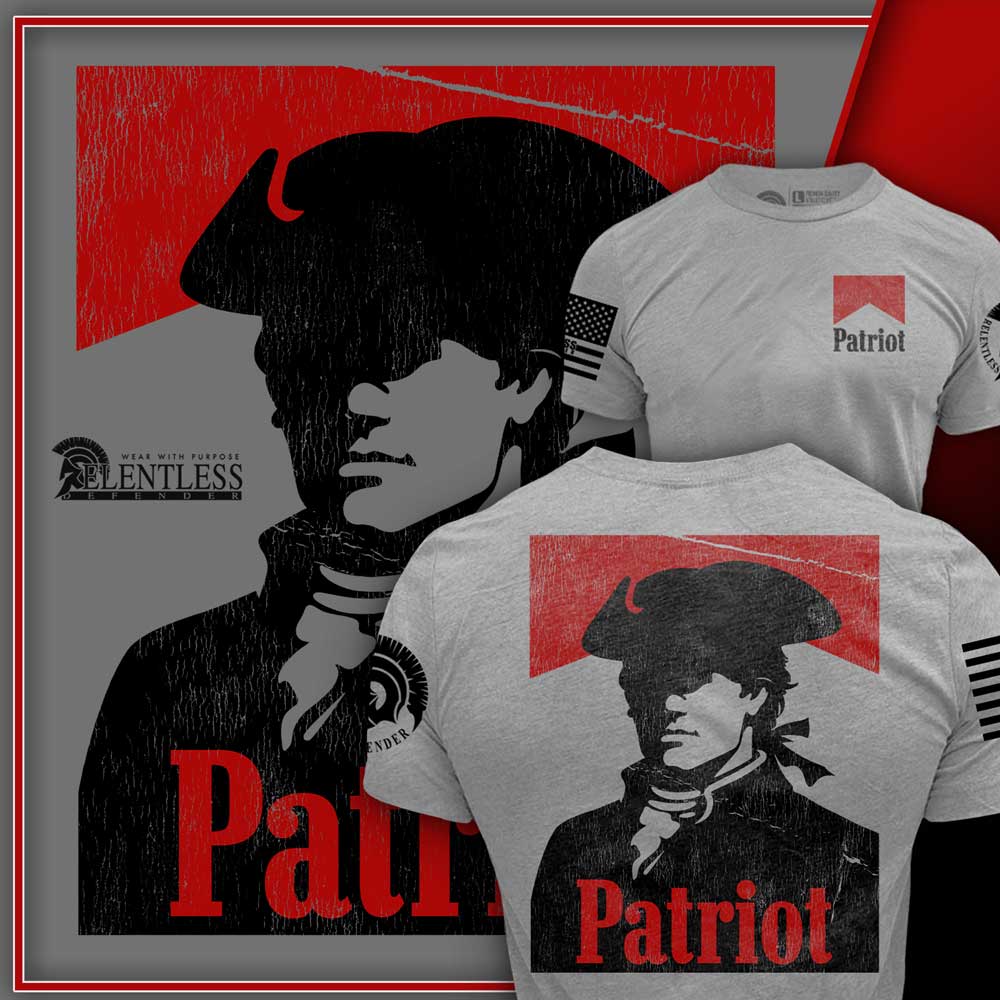 At the center of the design is a striking silhouette of a Revolutionary War soldier, representing the original patriots who stood their ground against tyranny and fought for the freedoms we enjoy today. Above and within the design, the word “Patriot” stands strong, serving as both a title and a responsibility for those who wear it.
